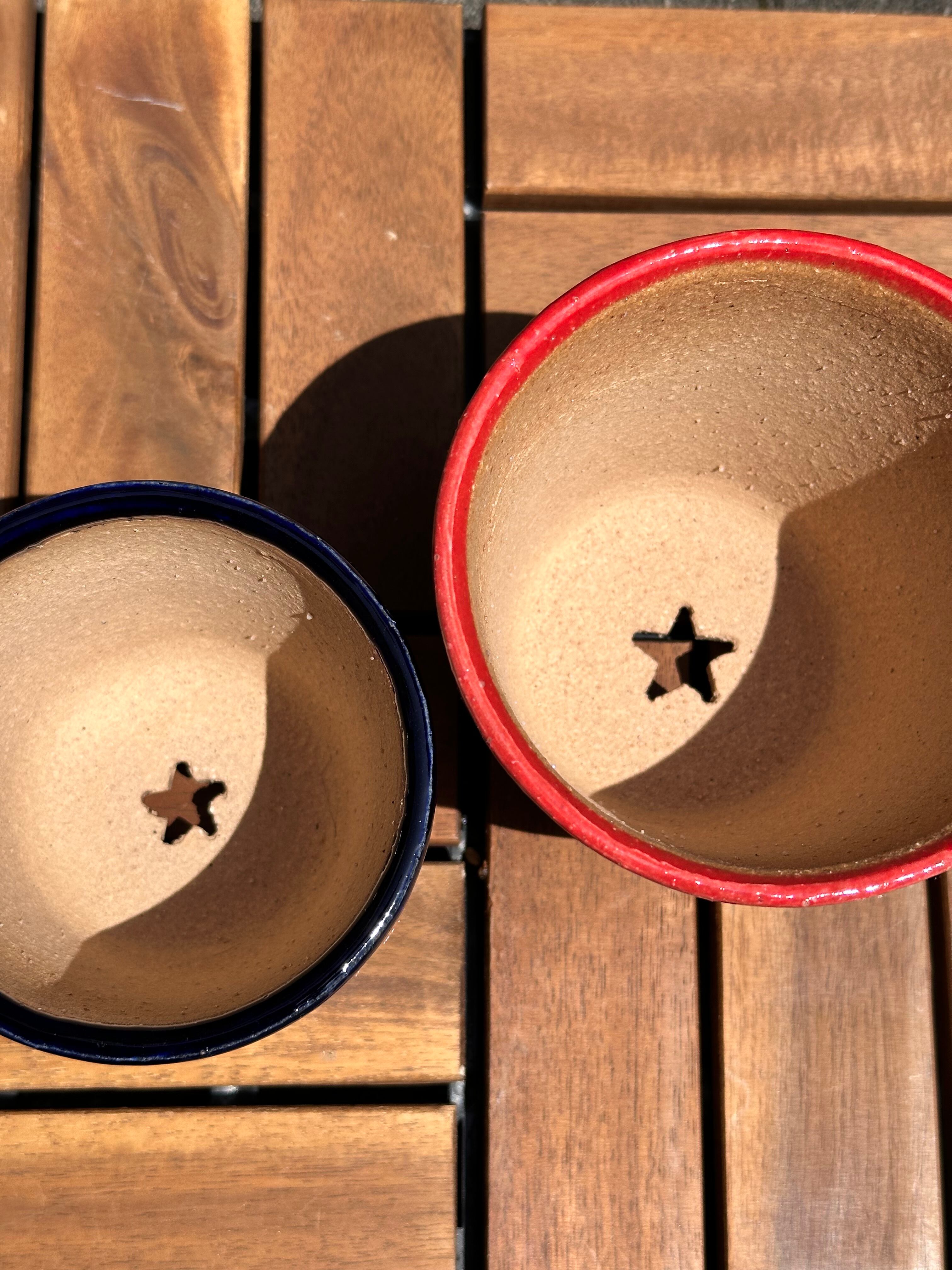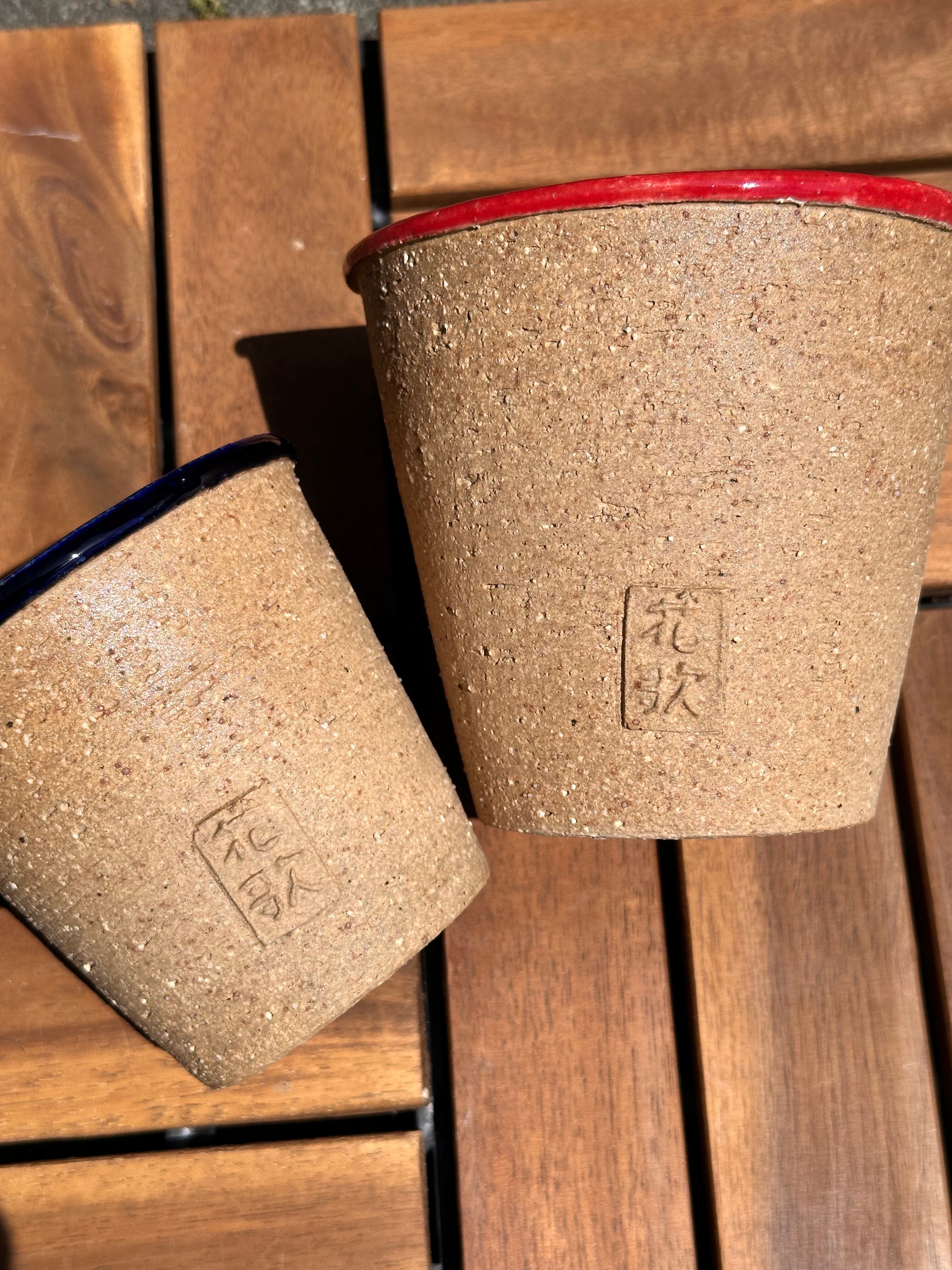 陶器鉢 セット‼️2サイズ 朱赤 L. 那須紺Mサイズ