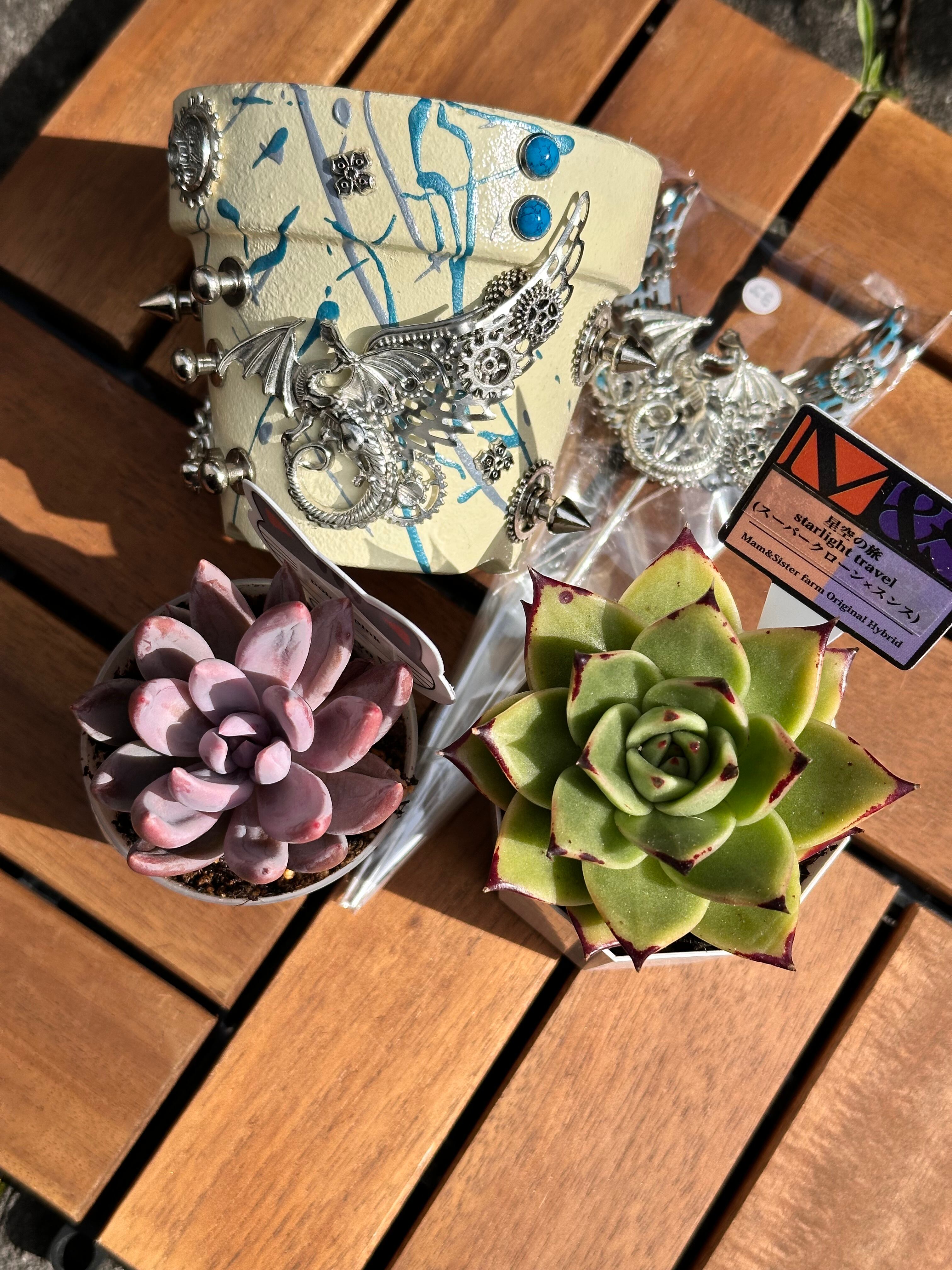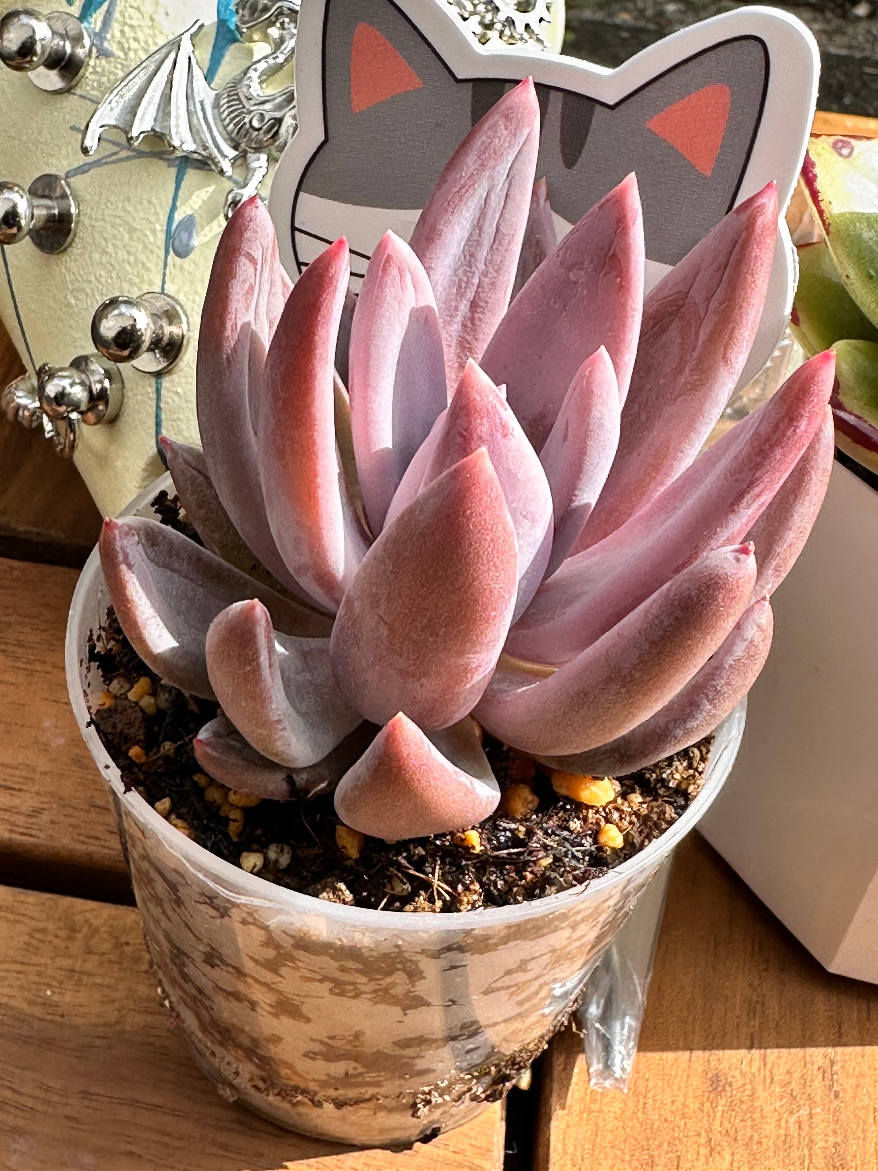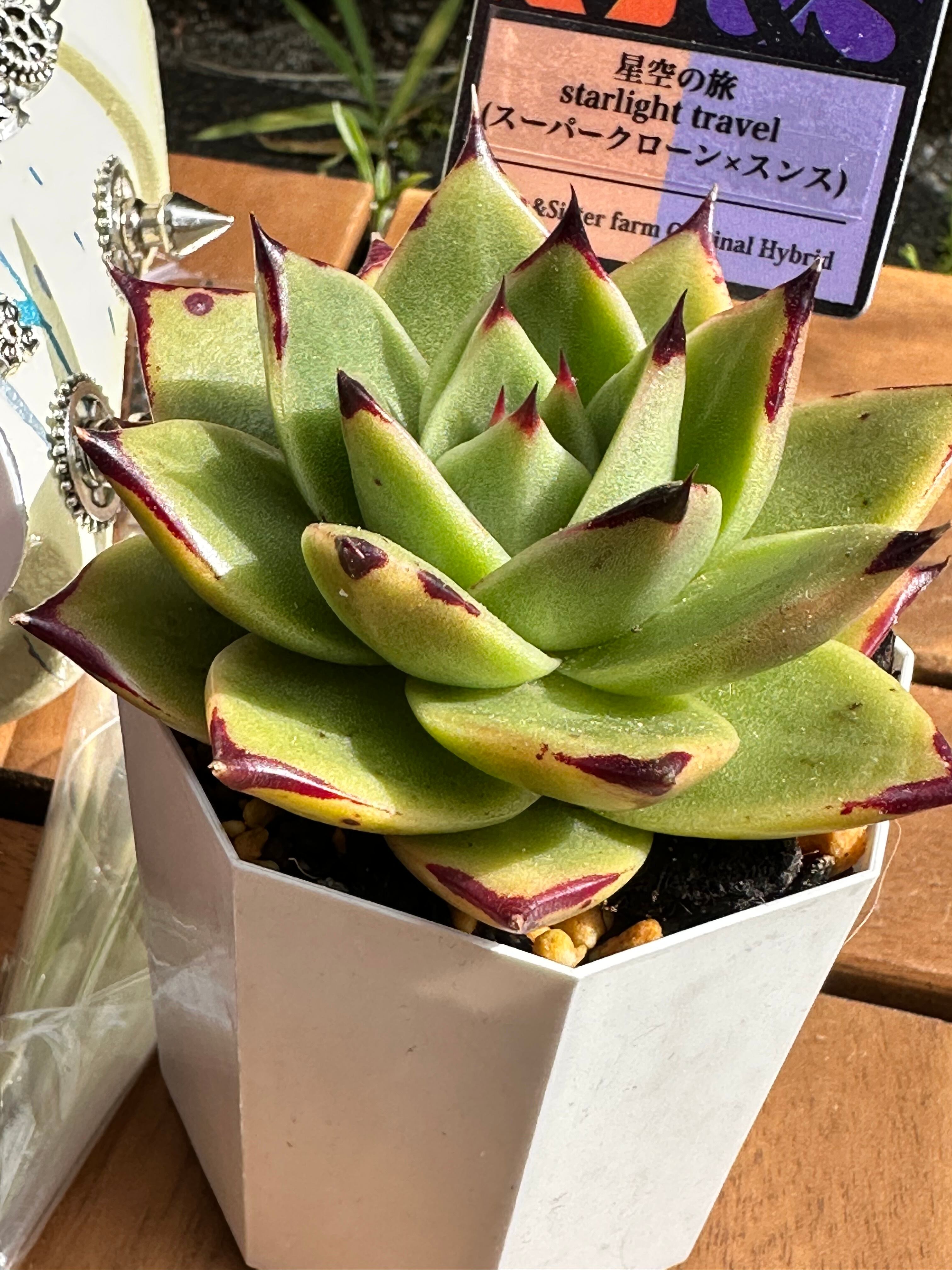 hisaさん ドラゴン鉢 3号鉢 ピック付き、 MS苗 星空の旅、ポインティピンク‼️苗の土が乾くのをまちたいので週末くらいに発送となります。